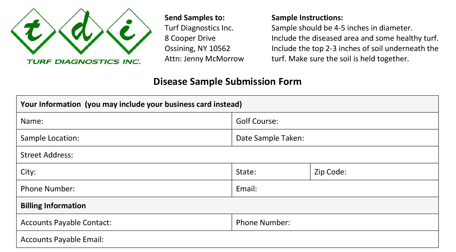 • If you want to include photos please email to turfdiagnostics@optonline.net.