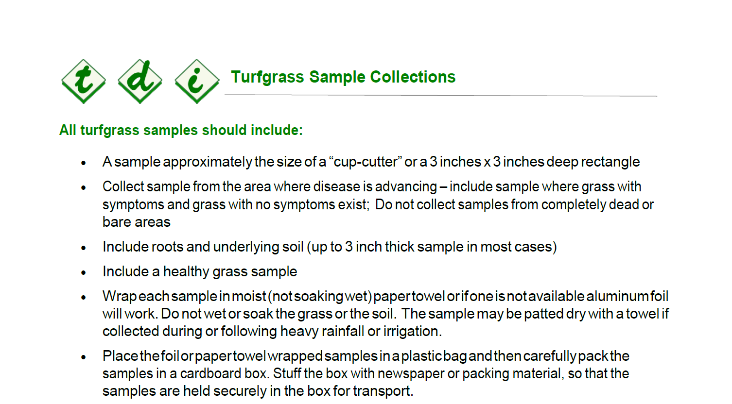 The following is the proper procedure for the collection and sending of a turf
